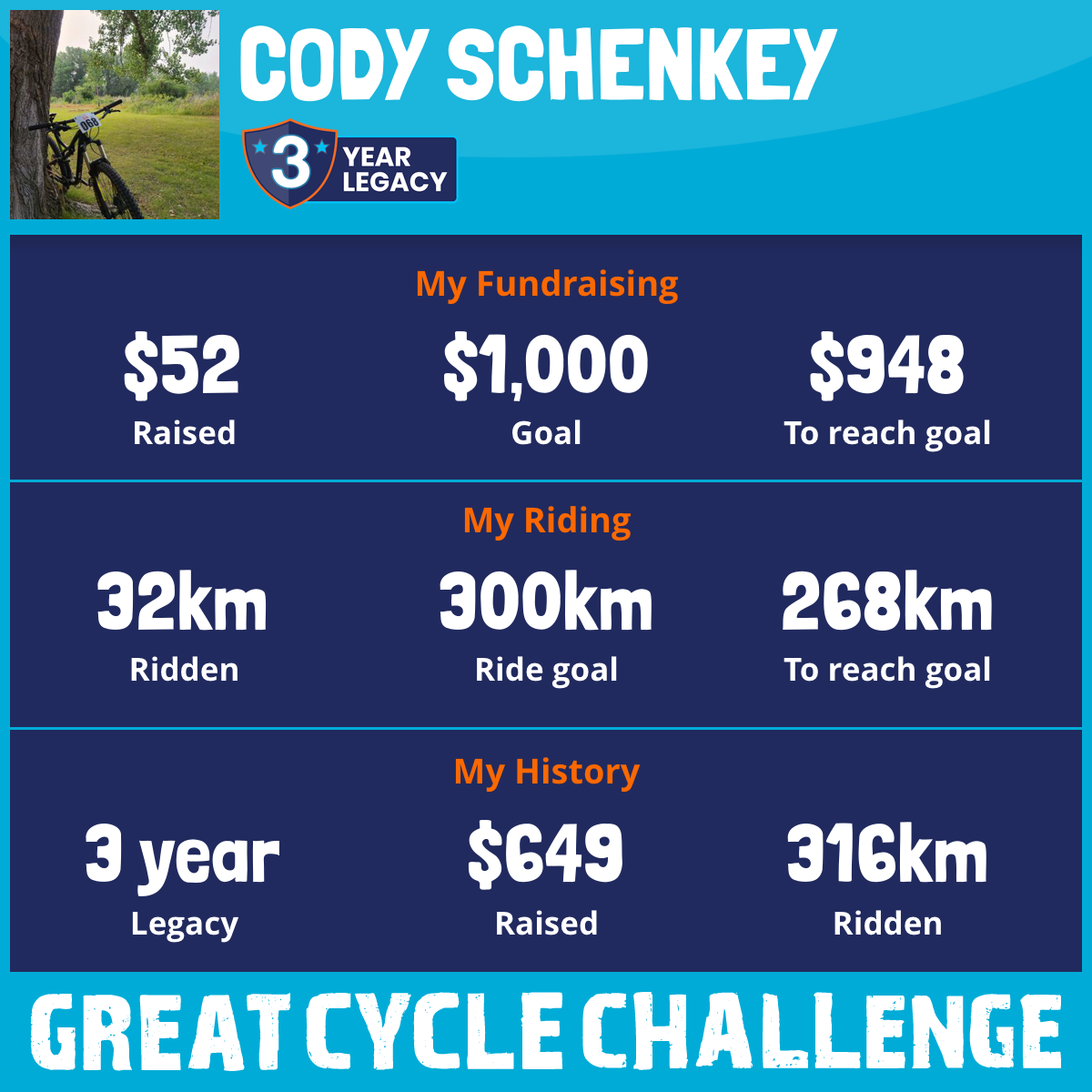 32 km Ridden$52 Raised2025
