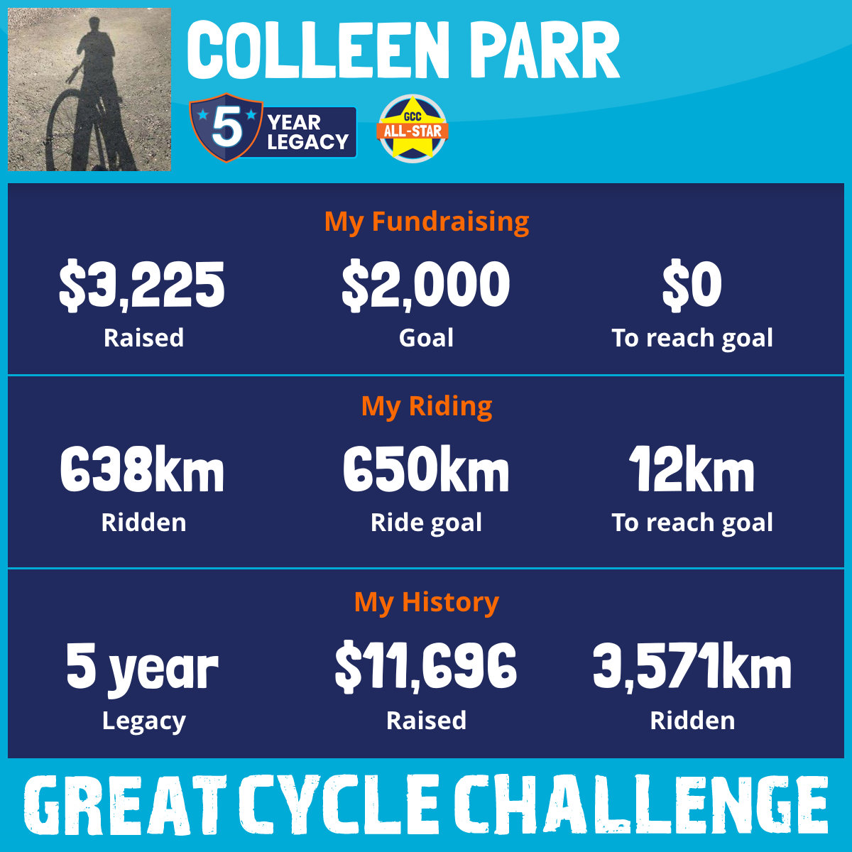712 km Ridden$3,369 Raised2025