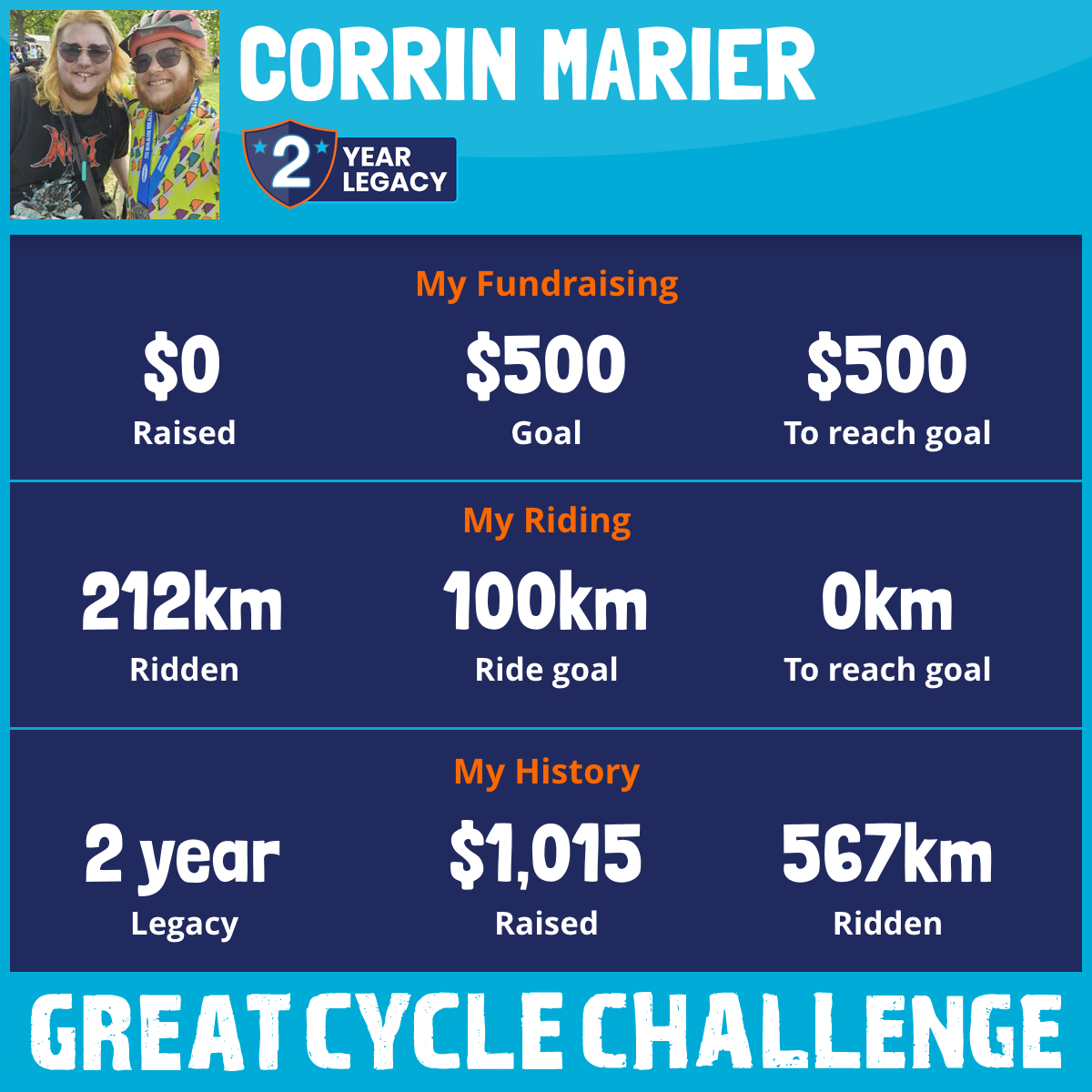 I've raised $0 My goal is $1,000 Donate Now