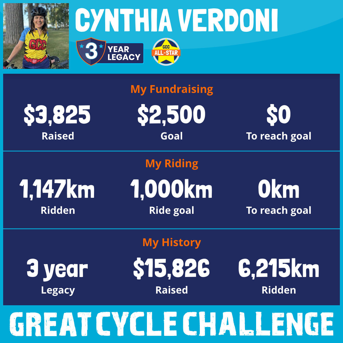 2,447 km Ridden$3,825 Raised2025