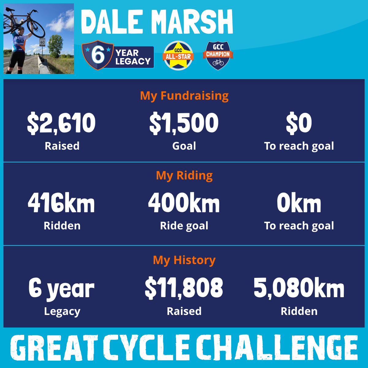819 km Ridden$2,504 Raised2023