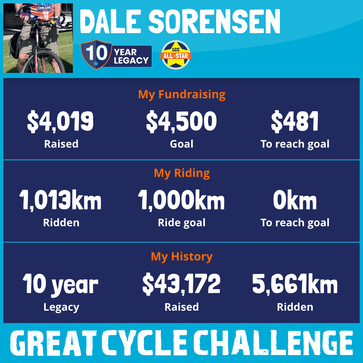 1,013 km Ridden$4,069 Raised2025