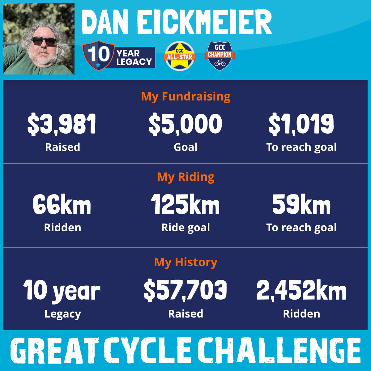 114 km Ridden$6,007 Raised2019