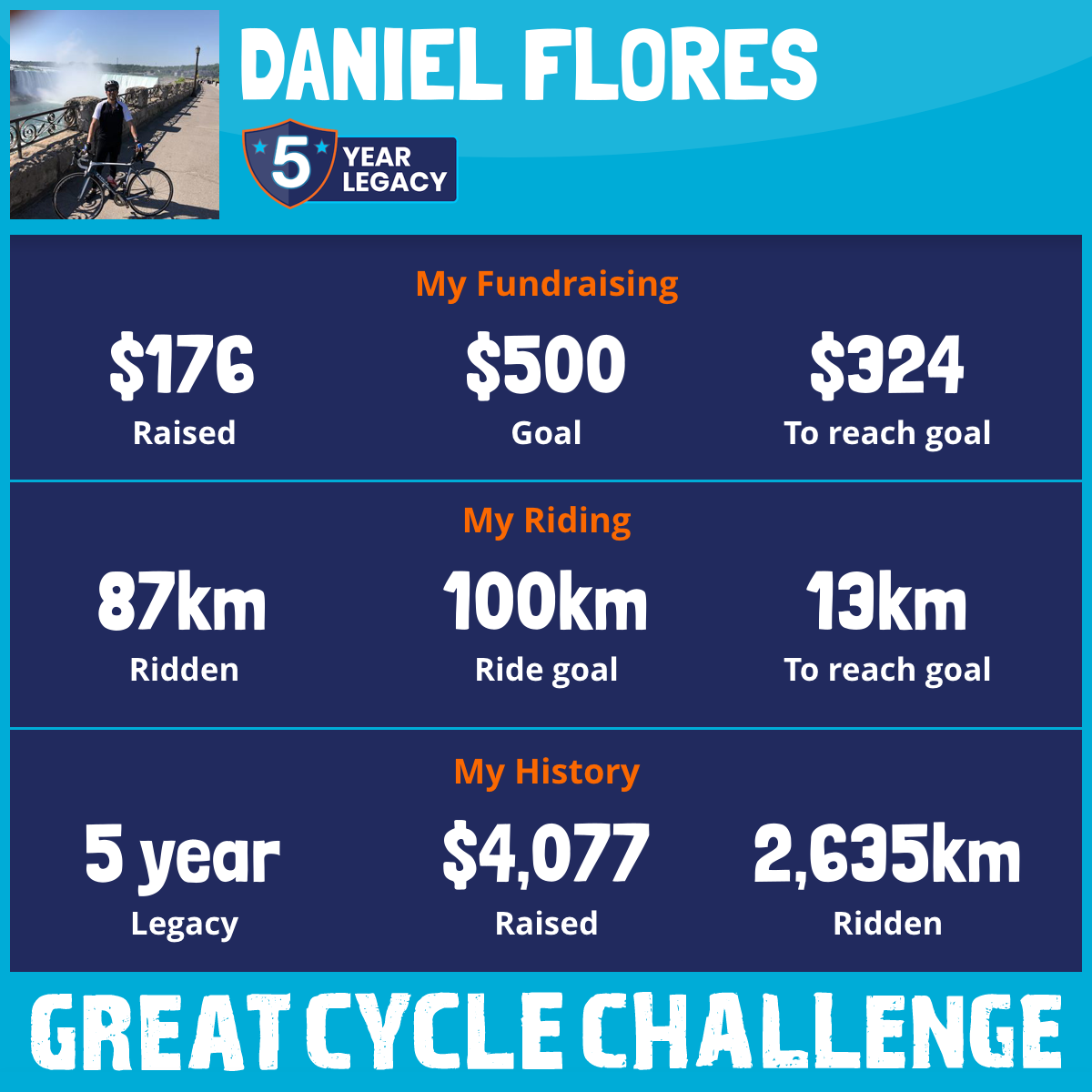 For the 4th straight year on August, I am riding 500km in the Great Cycle Challenge to rise and help fight kids' cancer!