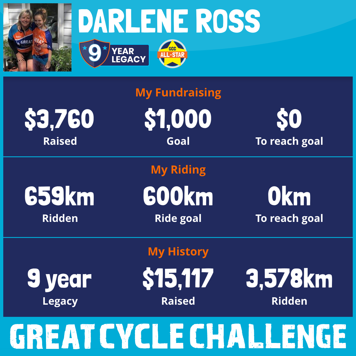 659 km Ridden$3,785 Raised2025