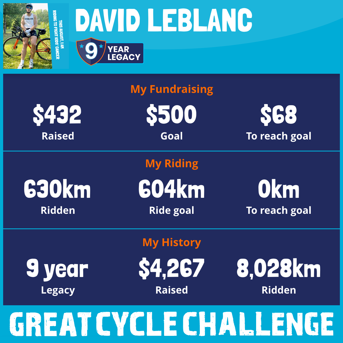 This August, I am taking part in the Great Cycle Challenge to fight kids' cancer!