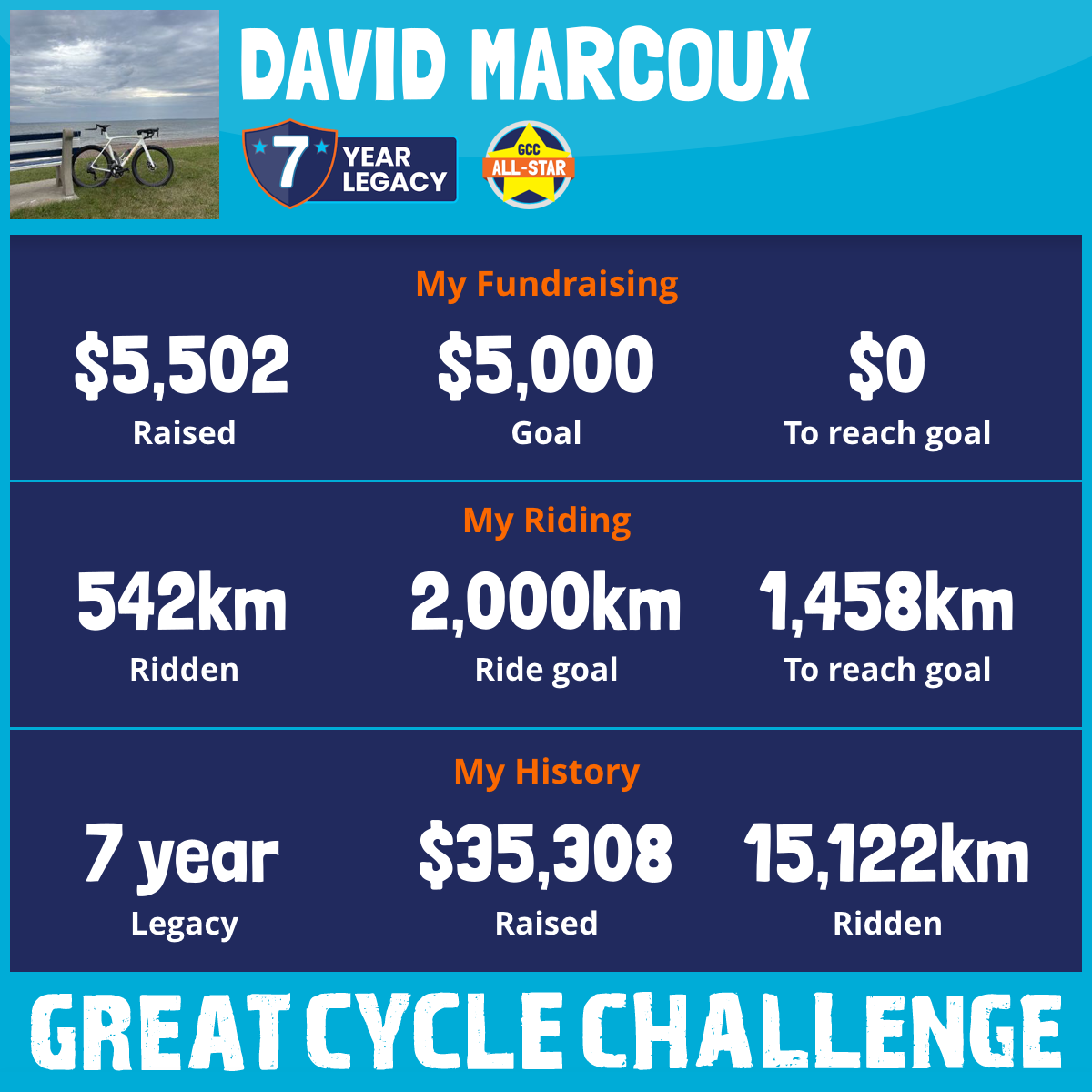 3,270 km Ridden$8,001 Raised2024