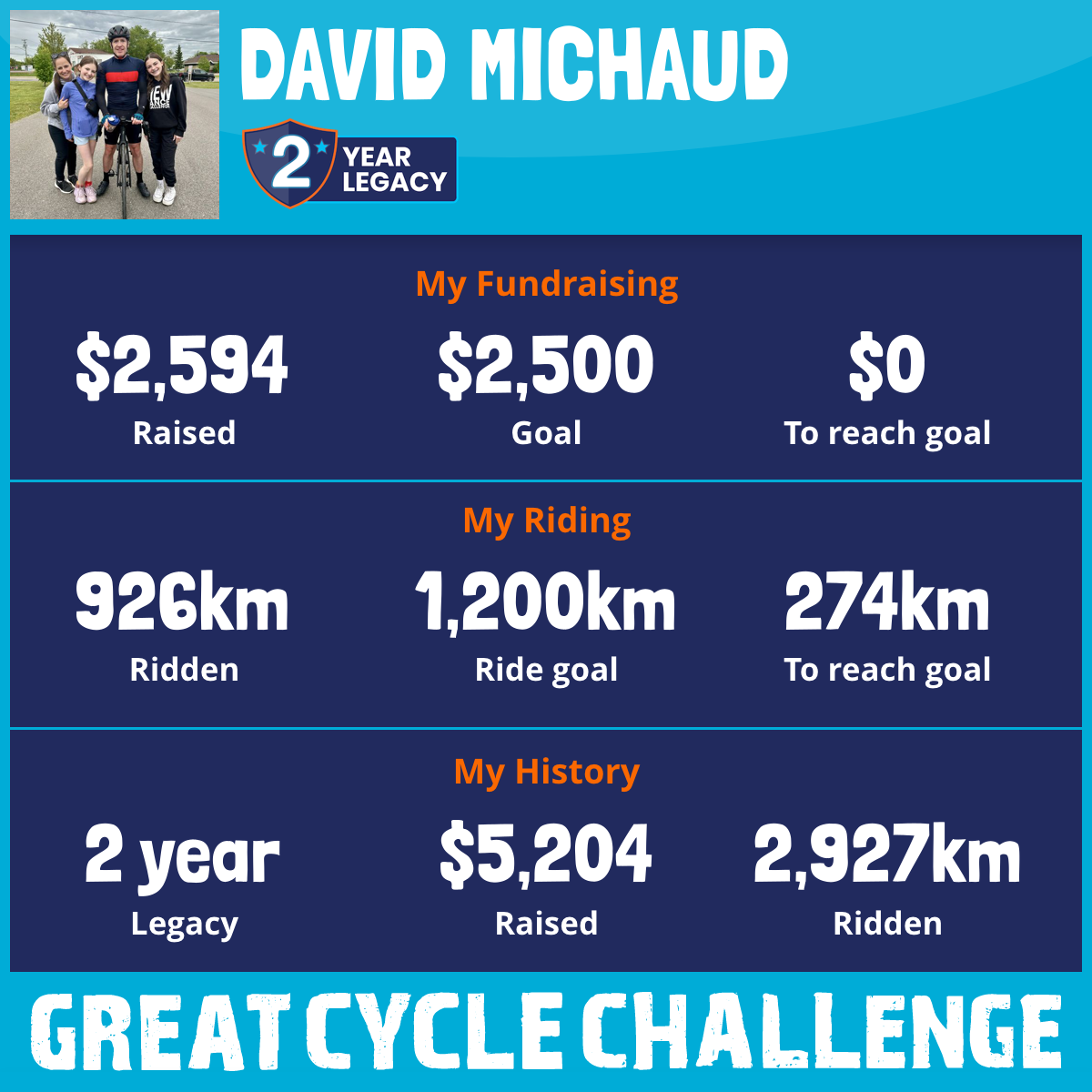 2,024 km Ridden$2,594 Raised2025