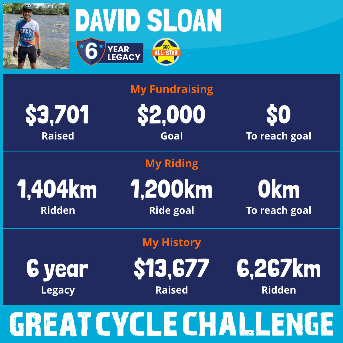 1,404 km Ridden$3,701 Raised2025