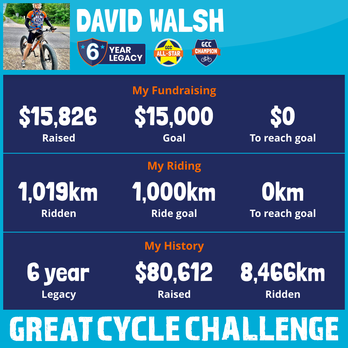 1,019 km Ridden$17,074 Raised2025