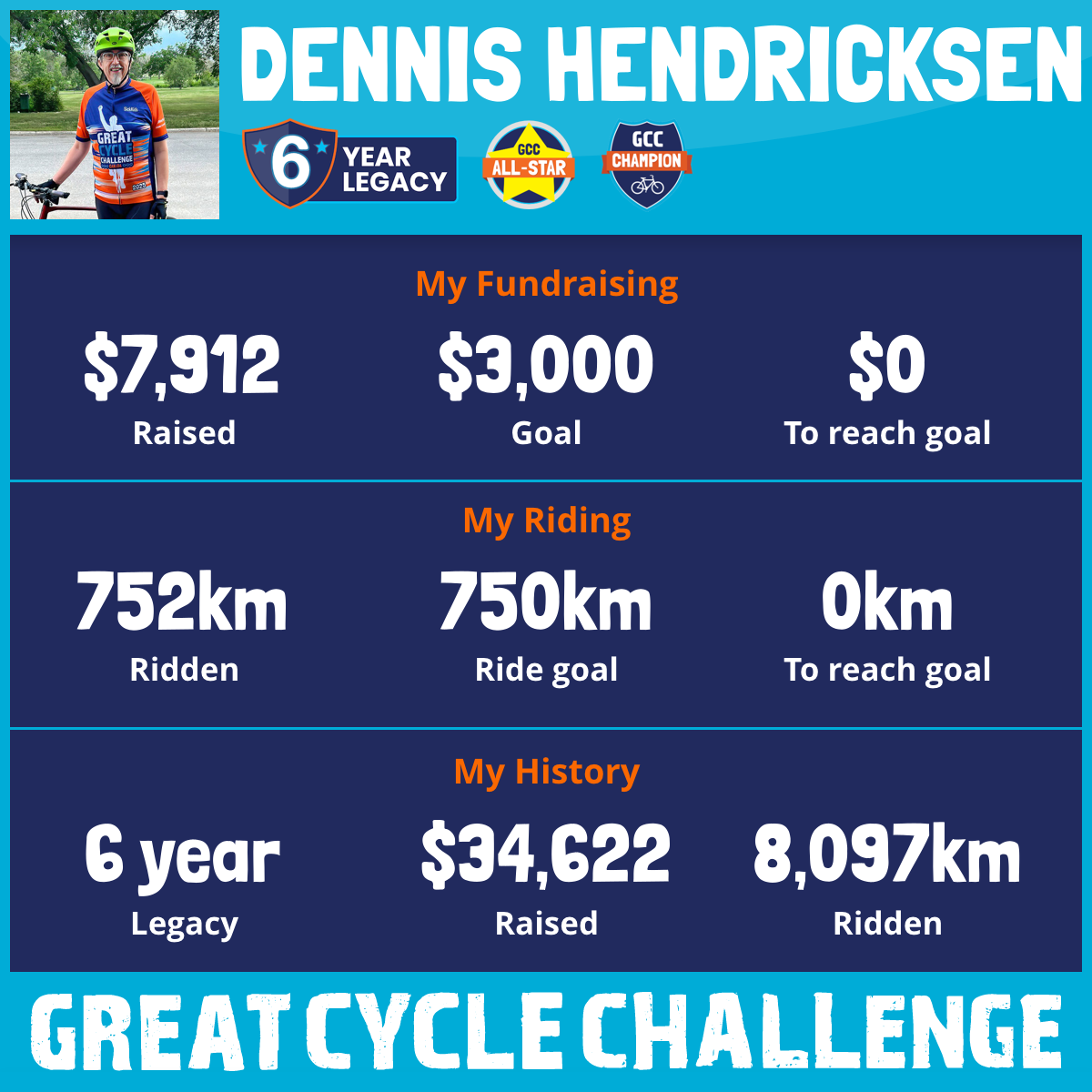 1,087 km Ridden$7,985 Raised2025