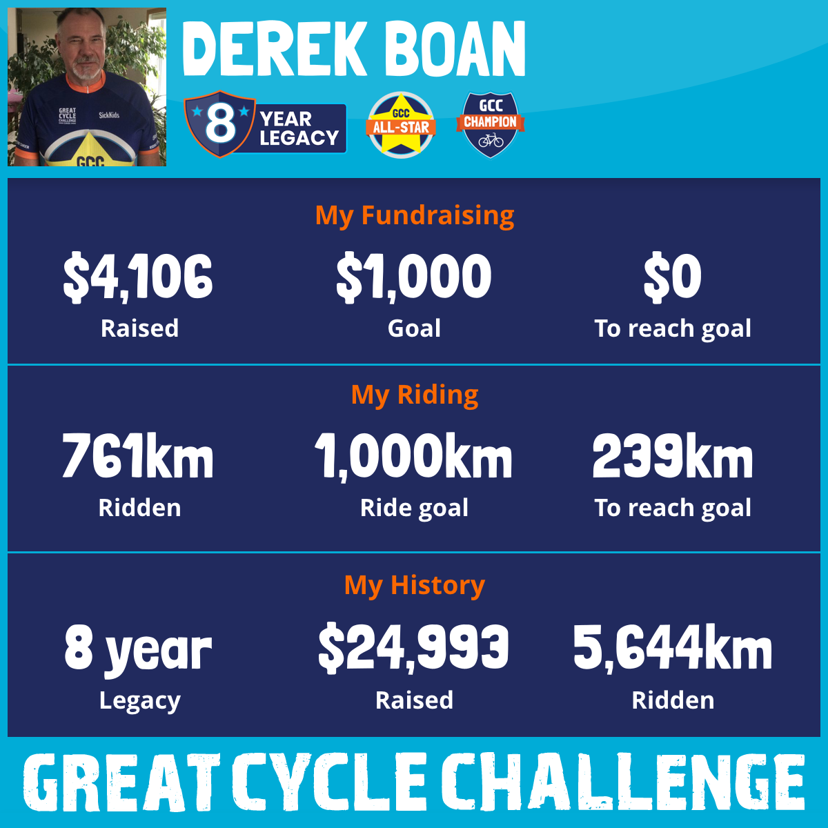 1,001 km Ridden$4,251 Raised2025