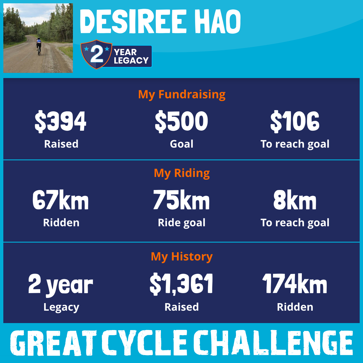 Why am I doing this? Inspired by my family - who are participating for their 3rd year - I too want to do my part to help the over 1,700 Canadian children who are diagnosed with cancer every year. August is a busy month, but my goal is to pedal at least 75 kilometers in support of this important cause.