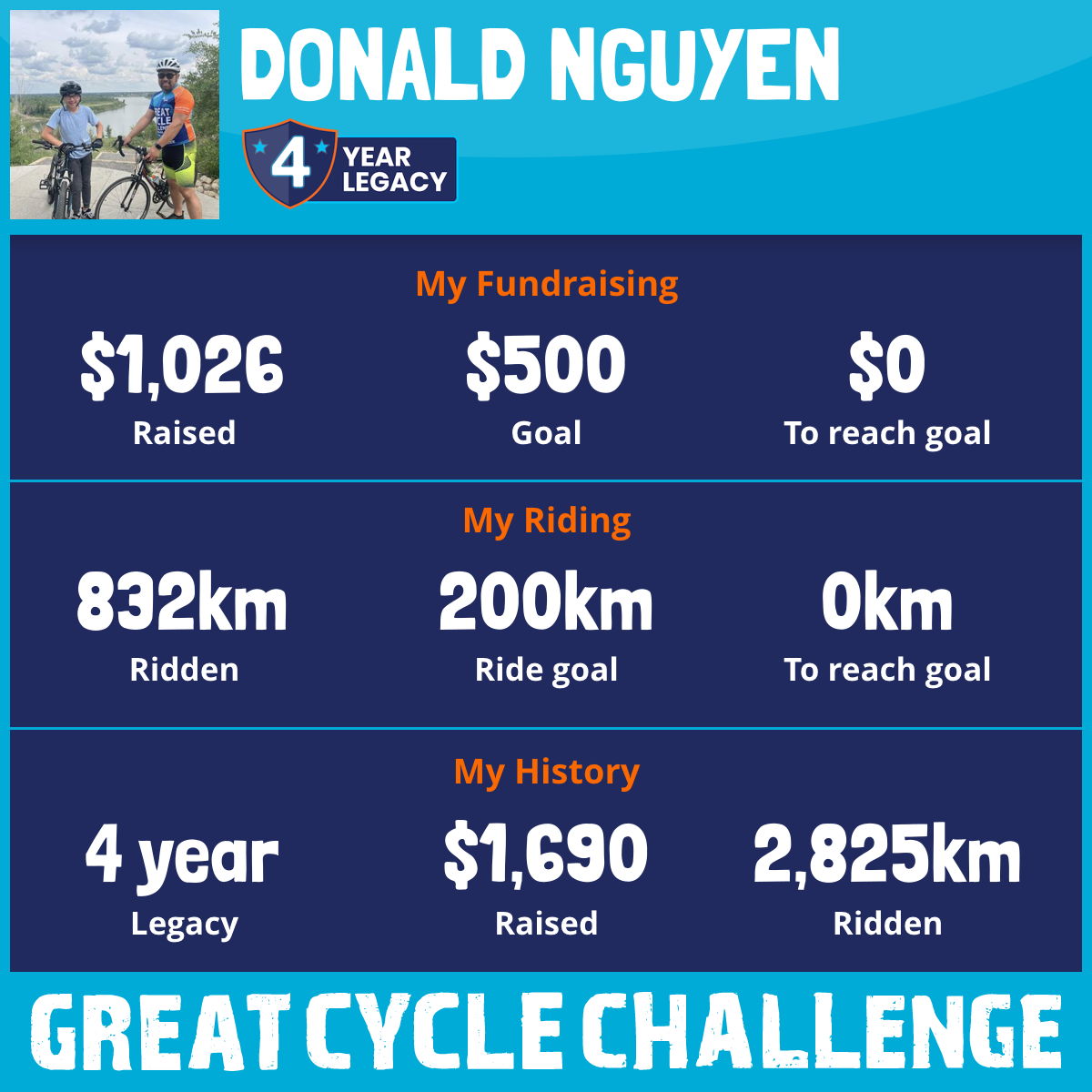 3,102 km Ridden$1,026 Raised2025