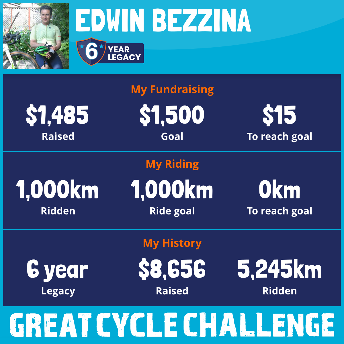1,000 km Ridden$1,506 Raised2025