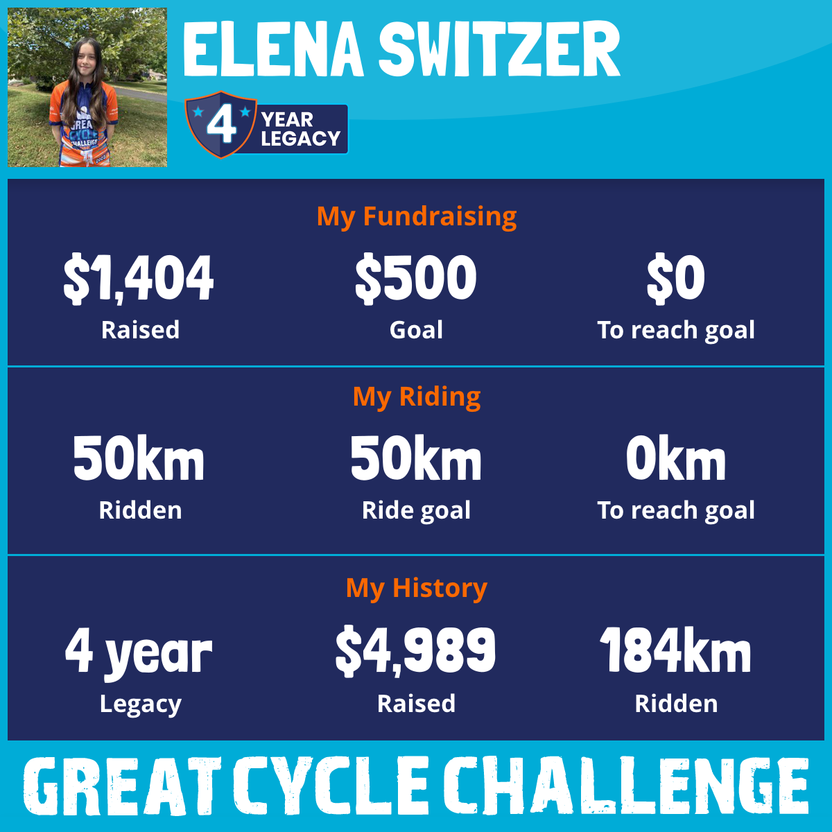 50 km Ridden$1,404 Raised2025