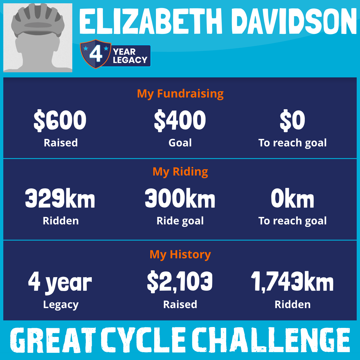 329 km Ridden$600 Raised2025