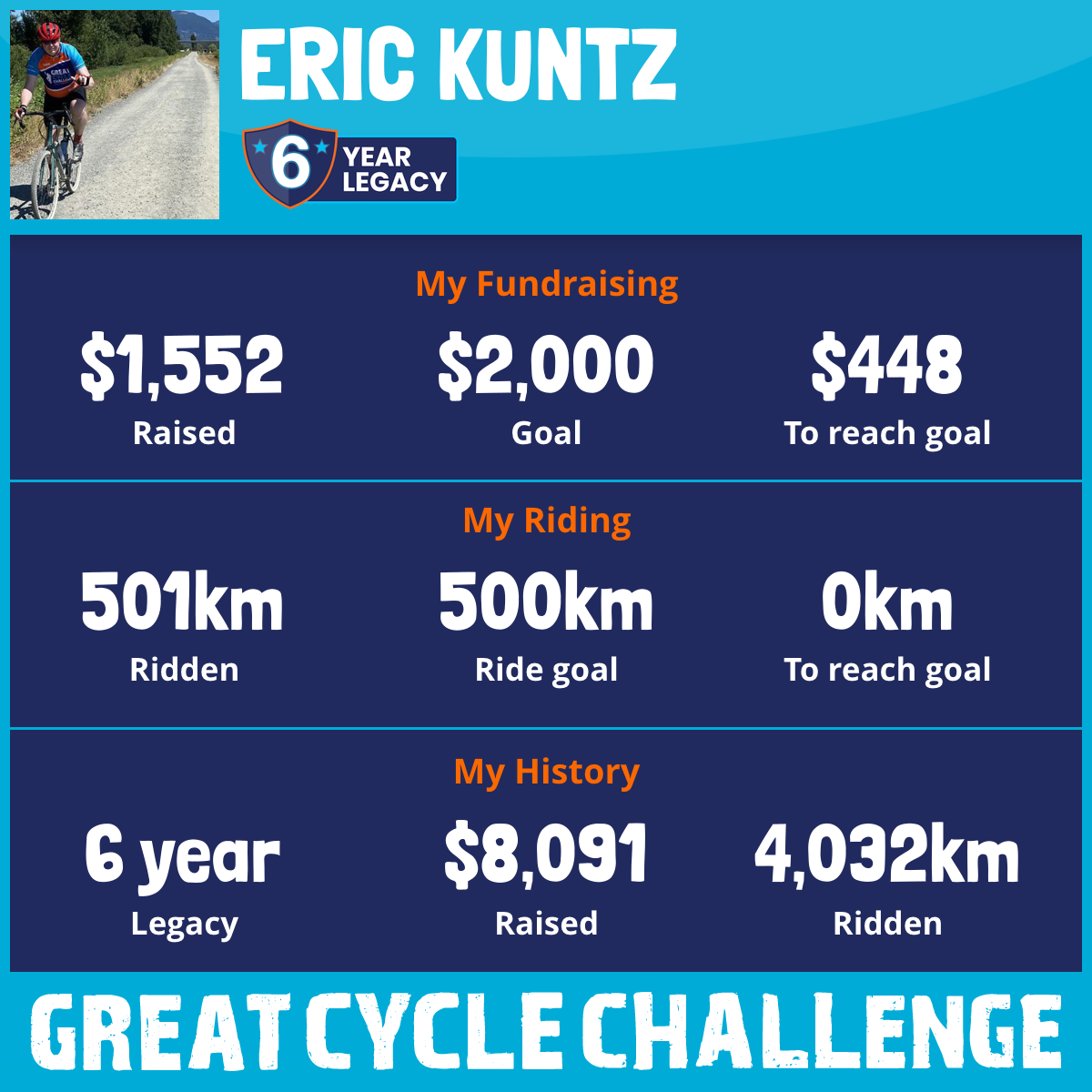 This August, I am taking part in the Great Cycle Challenge to fight kids' cancer! My base goal is $1000 and I have committed to ride 500km.