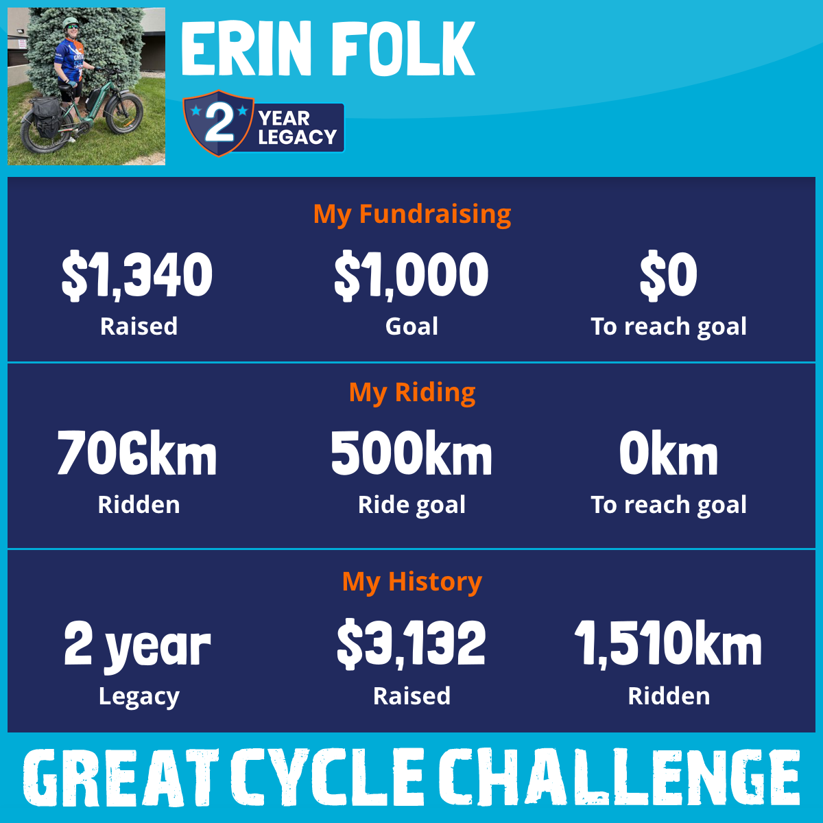 1,065 km Ridden$1,340 Raised2025