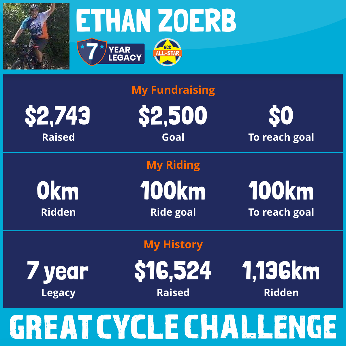 The Great Cycling Challenge is a great thing to do this summer with my family. I want to raise some money for cancer patients because my Grandpa had cancer last year and I know how hard it is to go through the cancer treatments with a family member. My grandpa past away last June. Last summer I had planned to do the ride for him but I broke my arm on may 25. I was really disappointed that I could not ride my bike, so I rode my family’s exercise bike 85 miles with a broken arm in the living room! I want to ride a lot this summer. I want to help people with cancer because I know how hard it is and I want to bring awareness to cancer. Biking is fun and I want to do it. This August, I am taking part in the Great Cycle Challenge to fight kids' cancer!