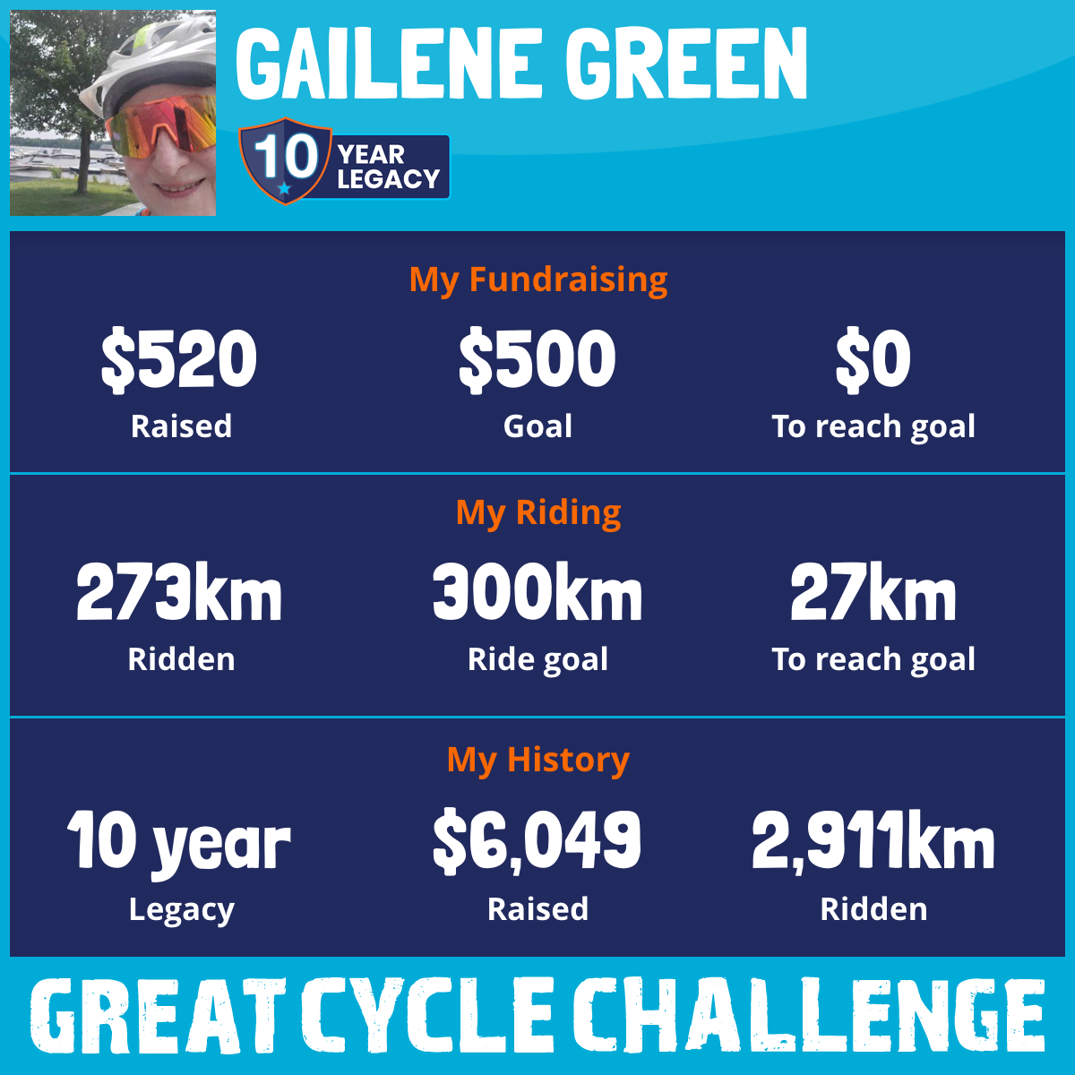 This August, I am taking part in the Great Cycle Challenge Canada to fight kids' cancer! This is my 10th year!!! It's not going to be easy with 2 new knees but I'm going to give all my effort to do it because the kids are depending on me.