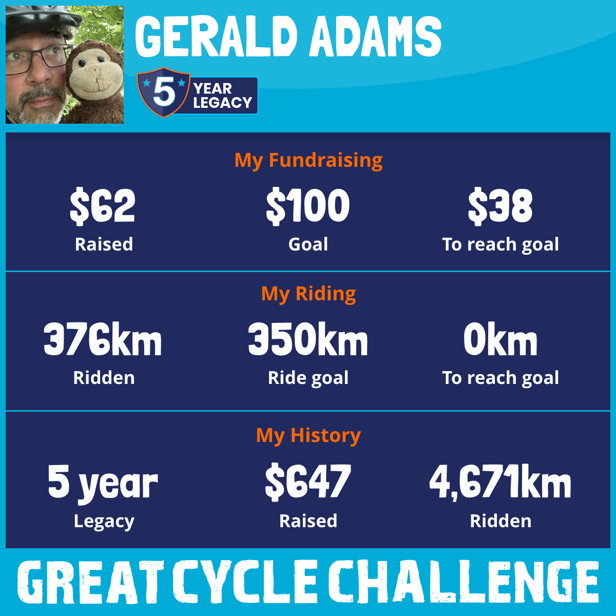 1,387 km Ridden$217 Raised2022
