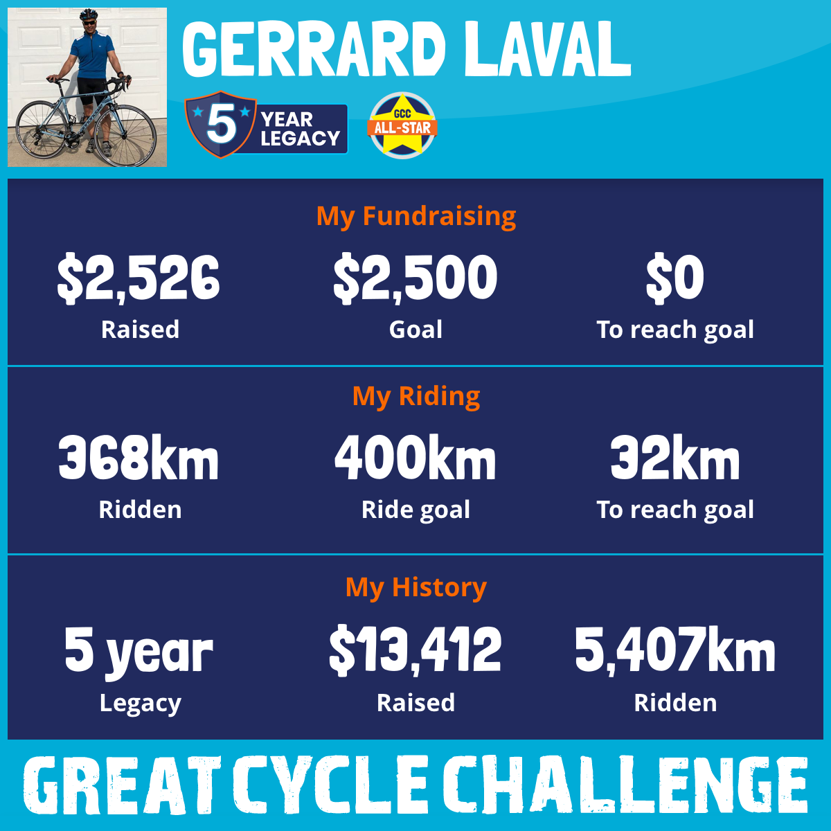 1,943 km Ridden$2,609 Raised2023