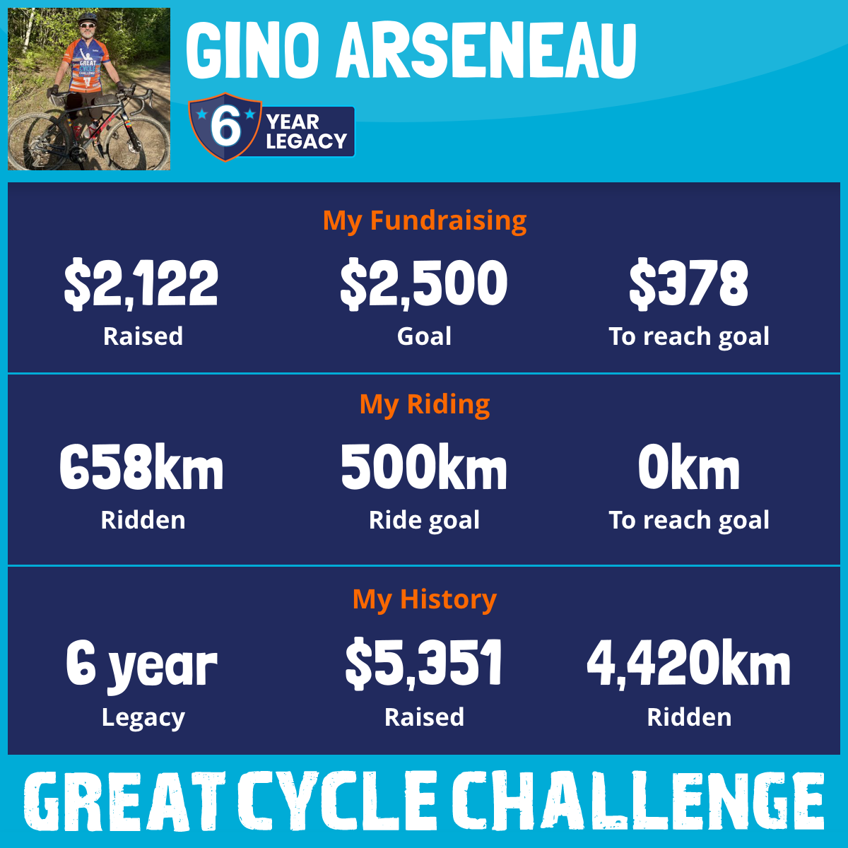 1,295 km Ridden$1,143 Raised2023