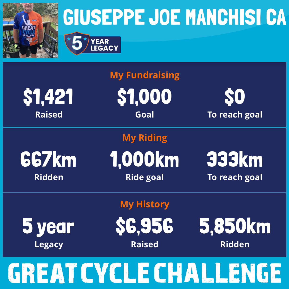 1,473 km Ridden$1,456 Raised2025