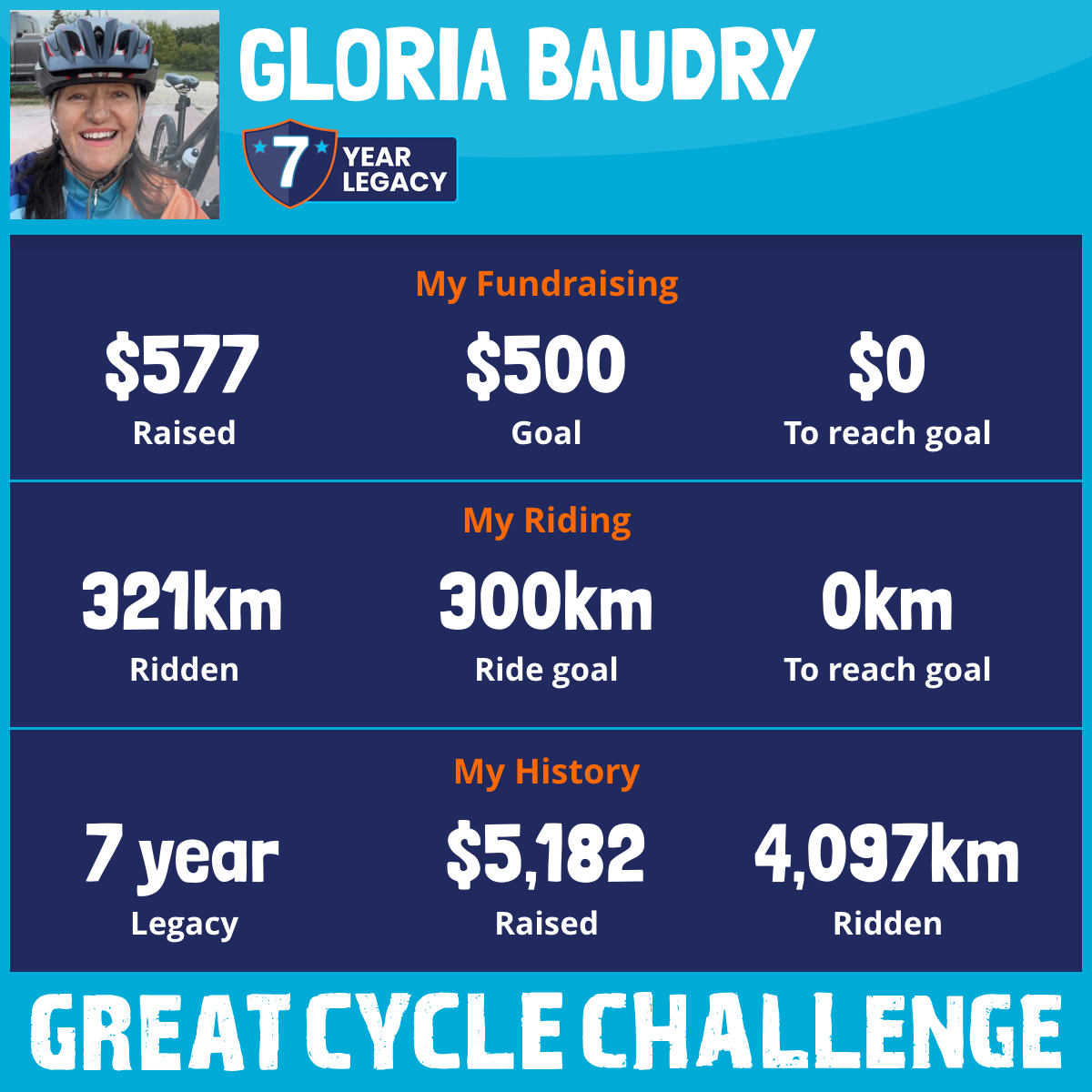 This August 2025 will be the seventh year I am taking part in the Great Cycle Challenge to fight kids' cancer!