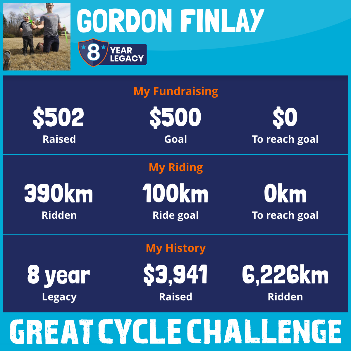 I am riding 100 km for George Finlay. Please sponsor me and support my challenge to fight kids' cancer and save little lives.