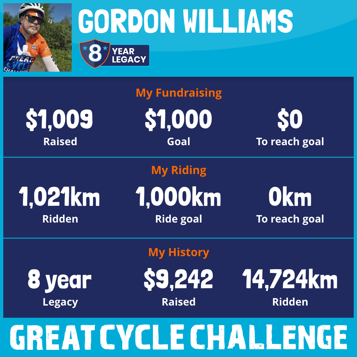 1,278 km Ridden$1,447 Raised2024