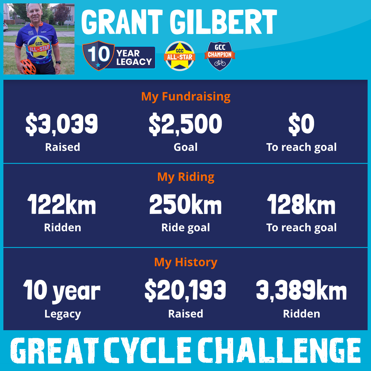 I am riding 250 km for Glen Thompson. Please sponsor me and support my challenge to fight kids' cancer and save little lives.