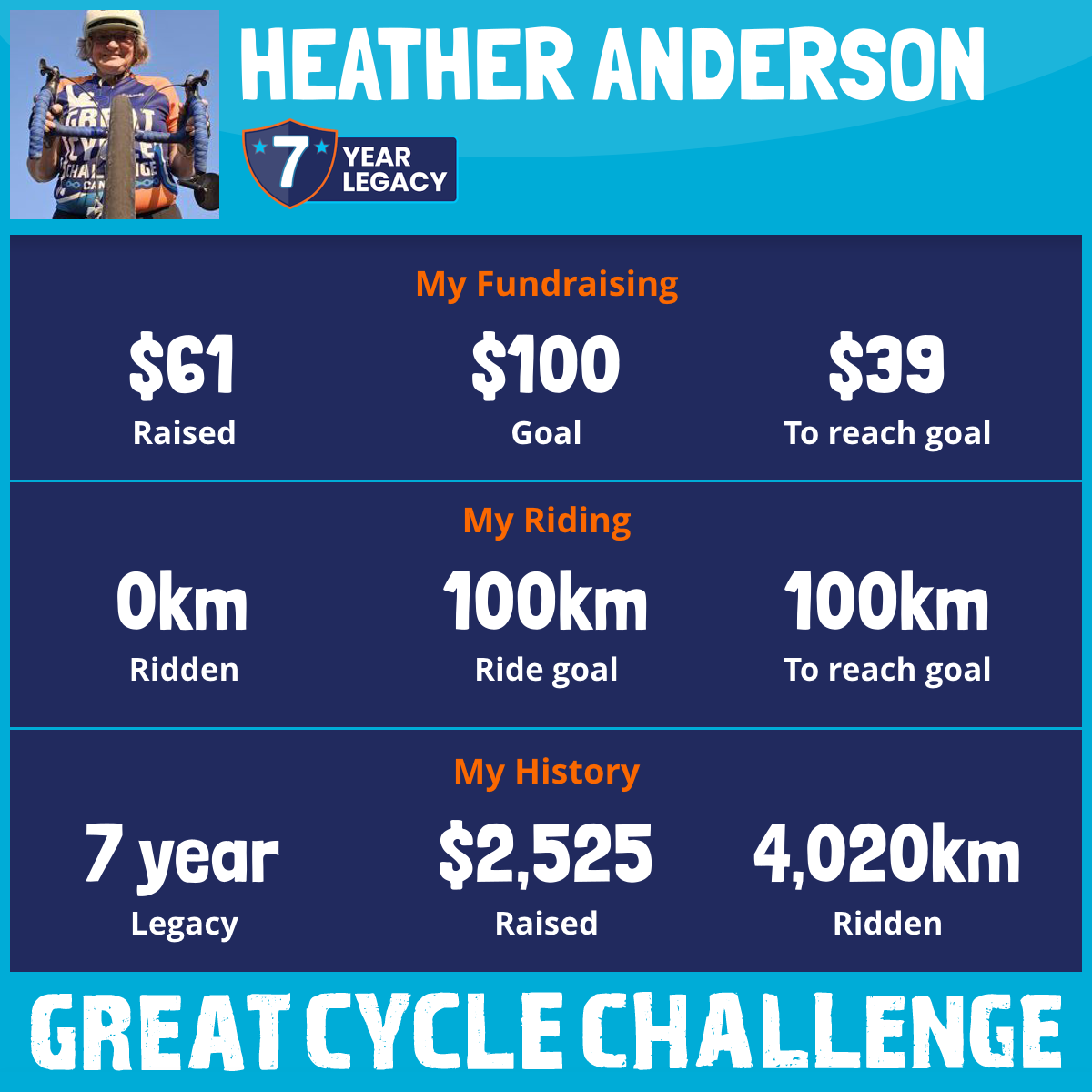 I am riding 100 km in memory of my myself, gramma m and grand daughter. Please sponsor me and support my challenge to fight kids' cancer and save little lives.