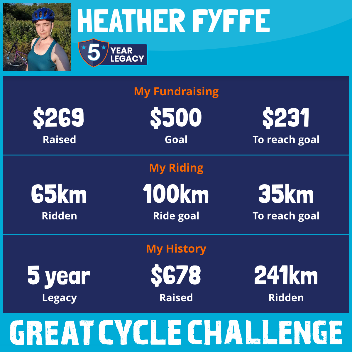 65 km Ridden$269 Raised2025