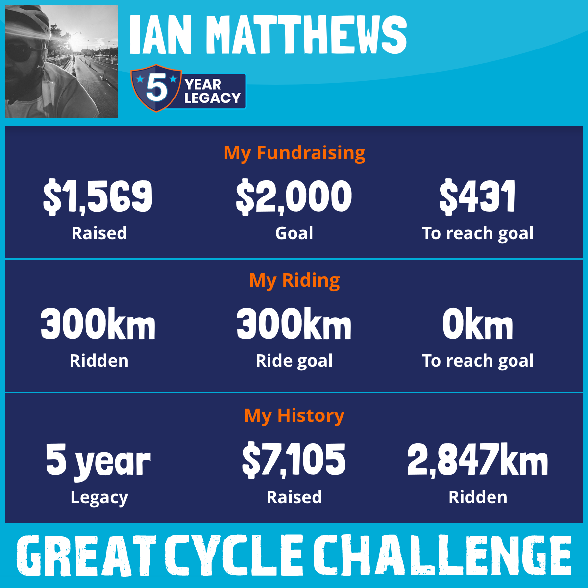 300 km Ridden$1,569 Raised2025