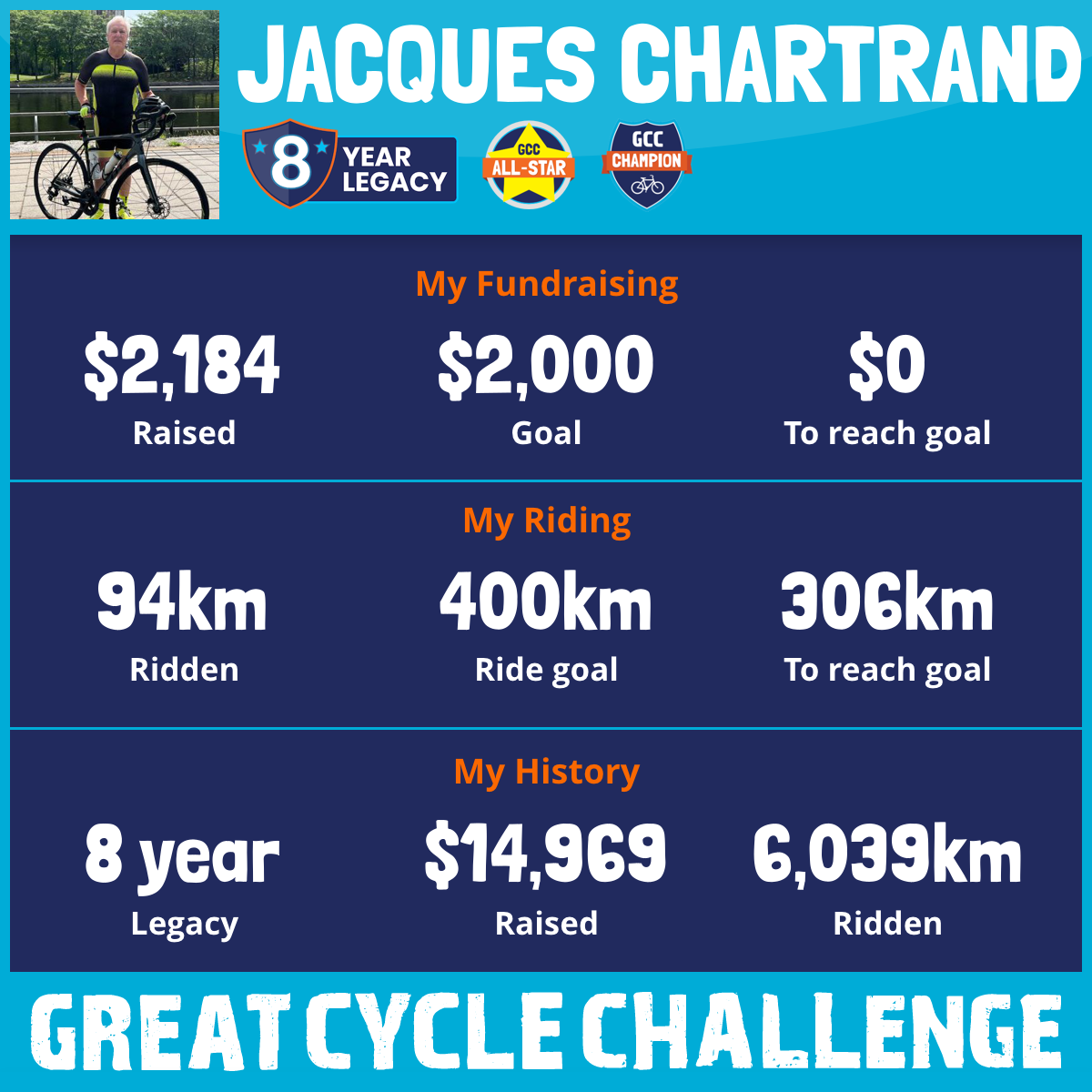 This is my 8 th year riding for this fundraising and I encourage you to support this cause to beat cancer with children, thank you in advance for your support and your generosity, amicably, Jacques