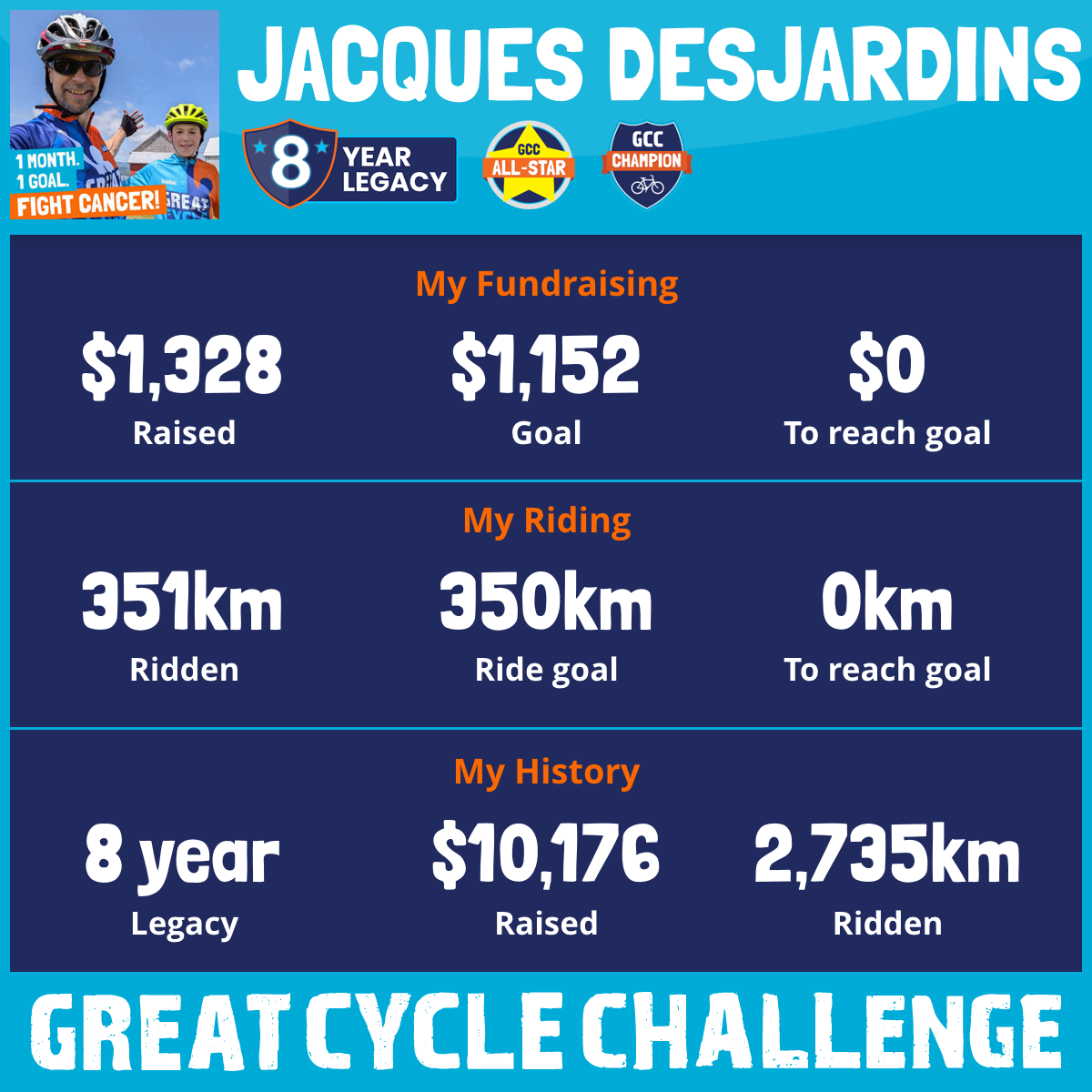 For a eight year (Since 2018), I am taking part in the Great Cycle Challenge to fight kids' cancer!