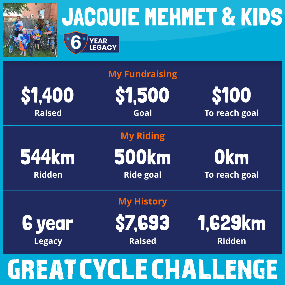 This August, the kids and I are taking part in our sixth year of the Great Cycle Challenge to fight kids' cancer!
