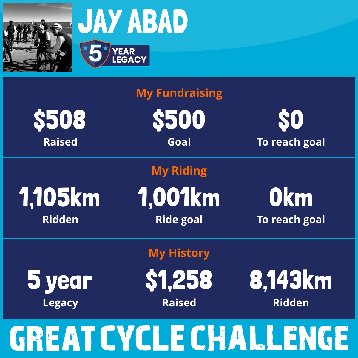 I am riding 1,001 km for Joaquin Abad. Please sponsor me and support my challenge to fight kids' cancer and save little lives.