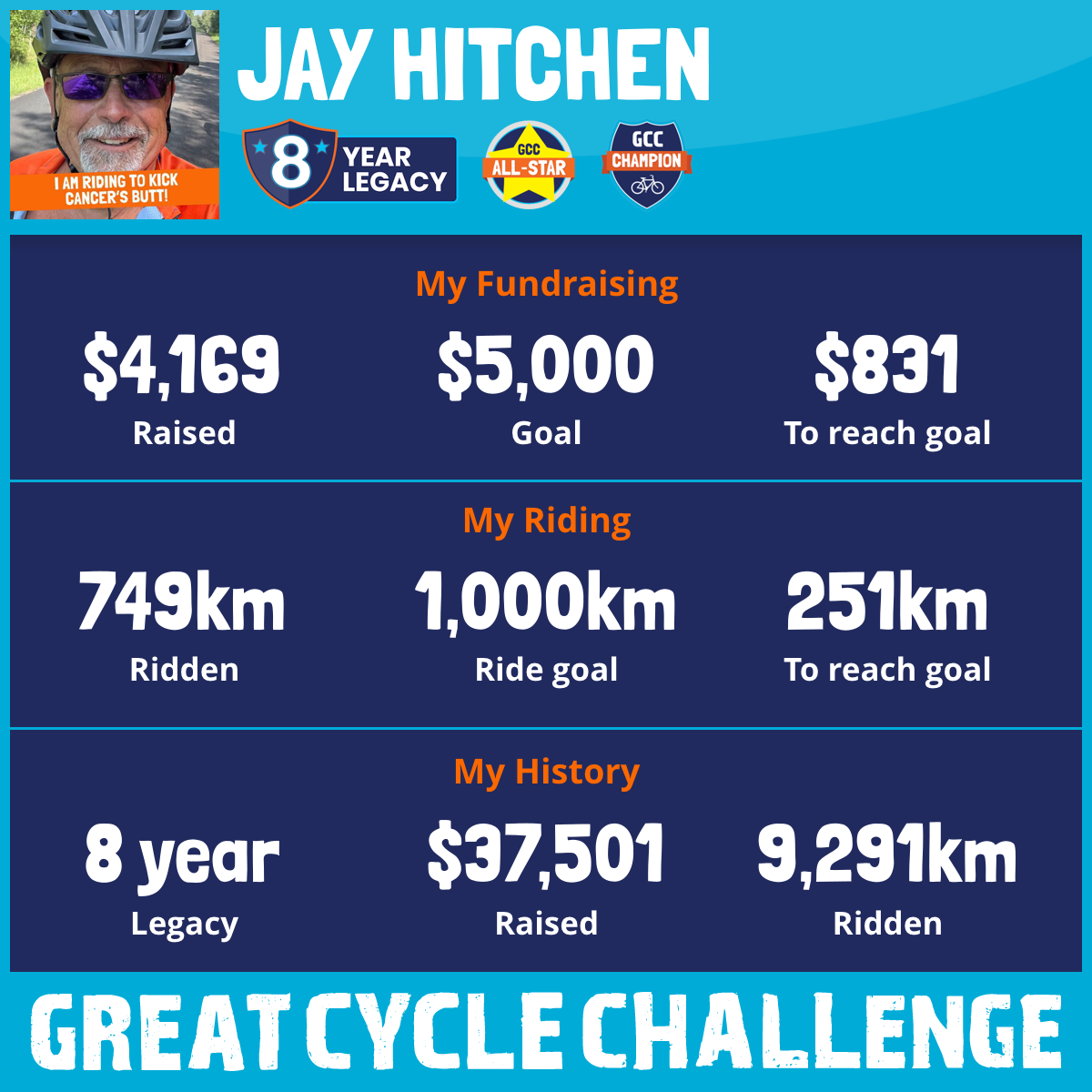 1,305 km Ridden$8,336 Raised2023