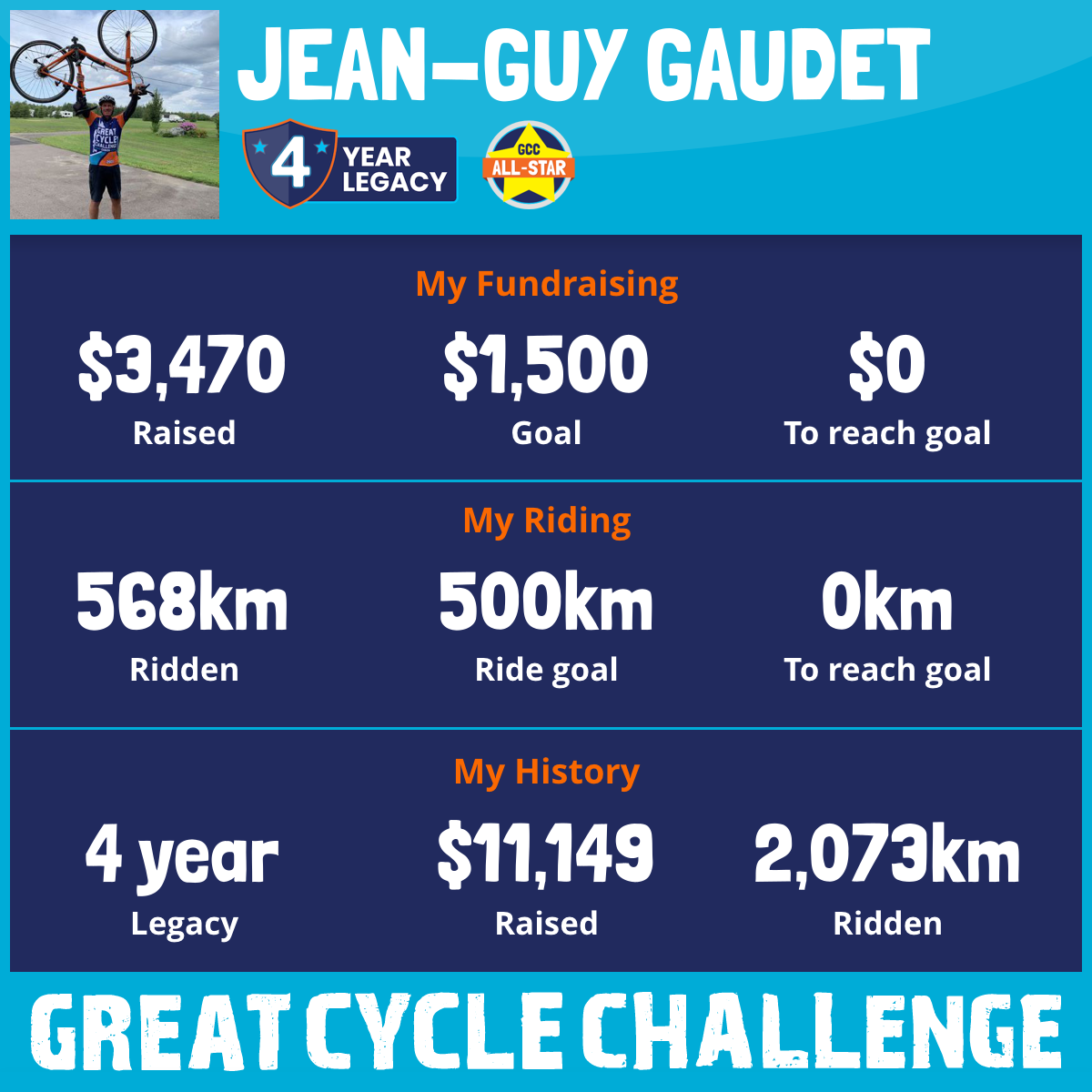 568 km Ridden$3,517 Raised2025