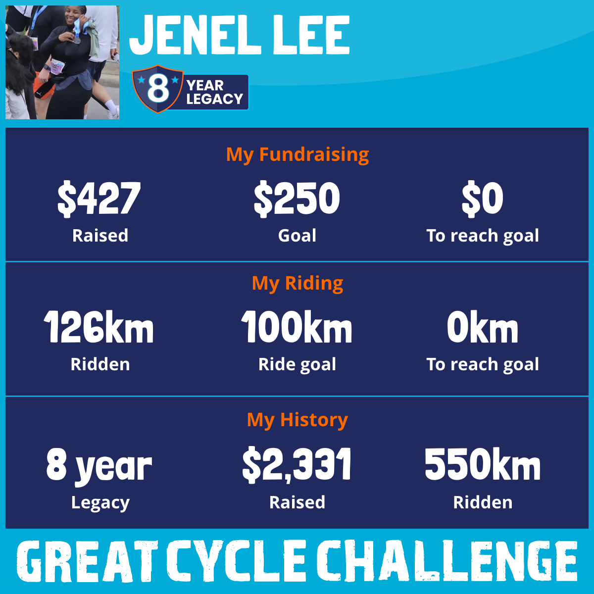 185 km Ridden$427 Raised2025