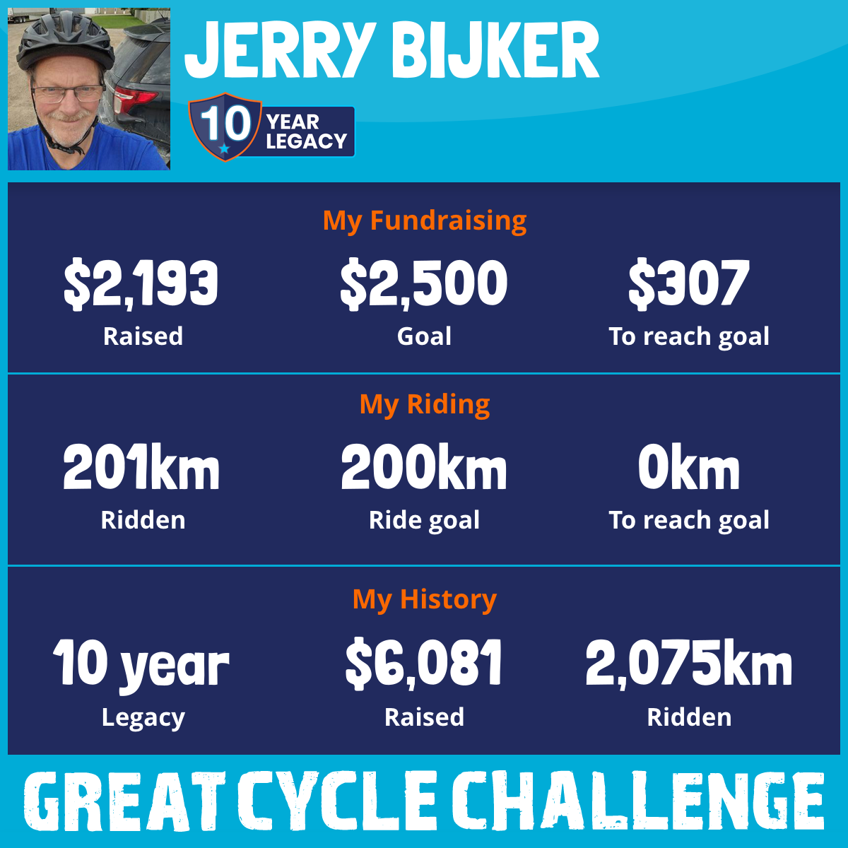 201 km Ridden$2,500 Raised2025