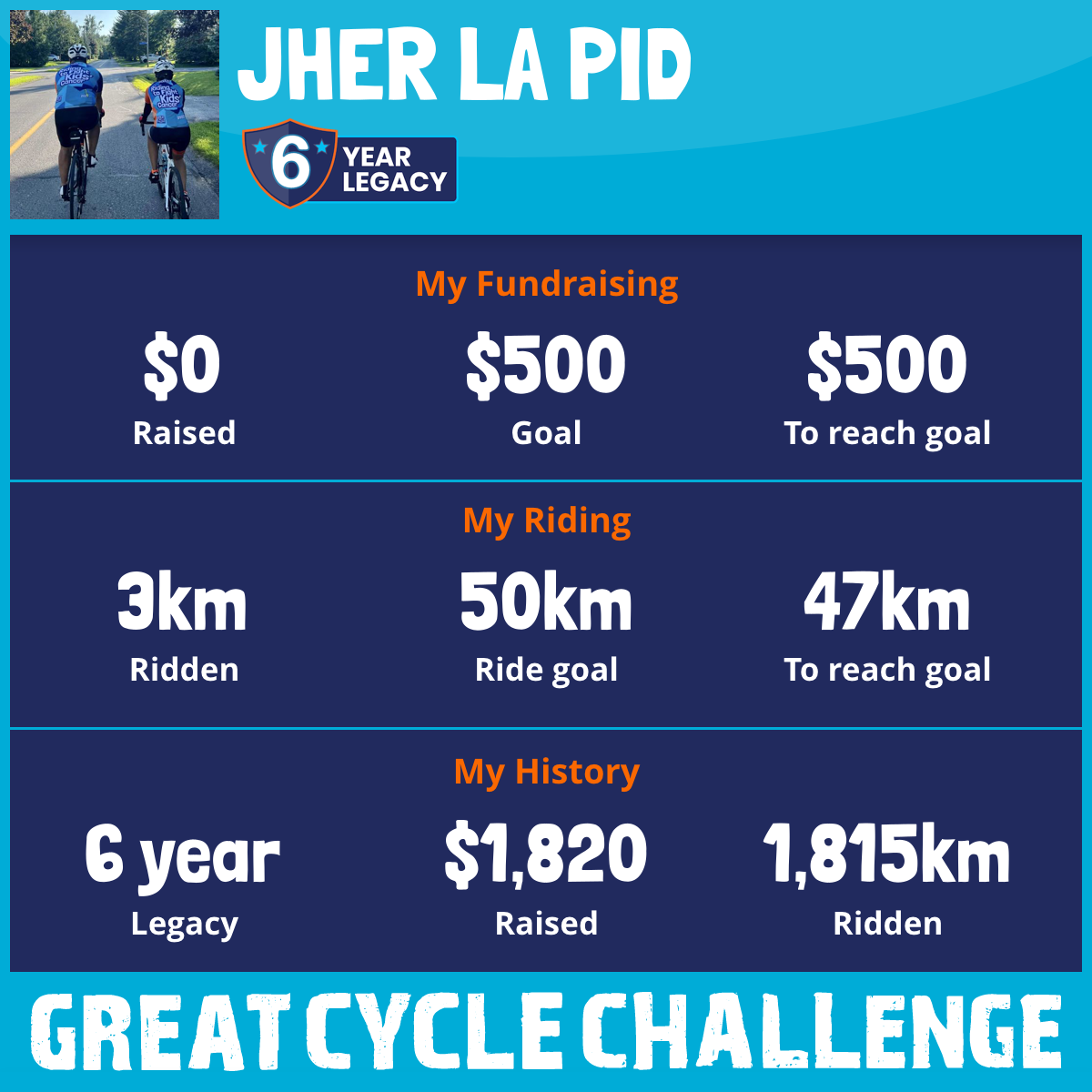 I am riding 50 km to fight kids' cancer and save little lives. Please sponsor me to support my challenge!