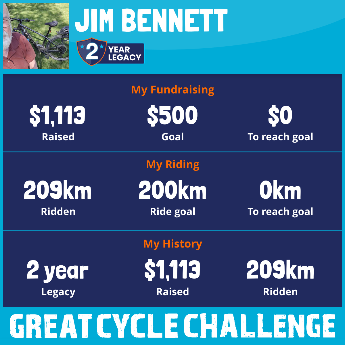 209 km Ridden$1,113 Raised2025