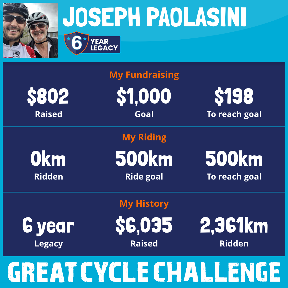 501 km Ridden$1,002 Raised2024