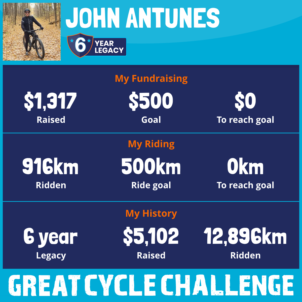 I am riding 500 km for Elizabeth Antunes. Please sponsor me and support my challenge to fight kids' cancer and save little lives.