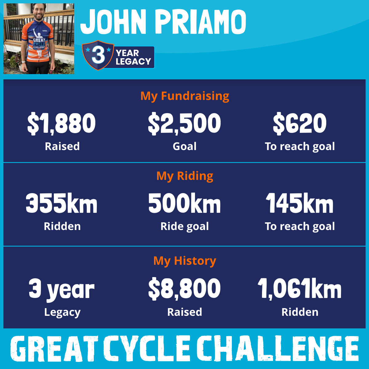 Please make a donation through my fundraising page to support my challenge and join me in the fight to save big little lives. For every $10 above $2500 I will ride an extra km above my 500 km goal.