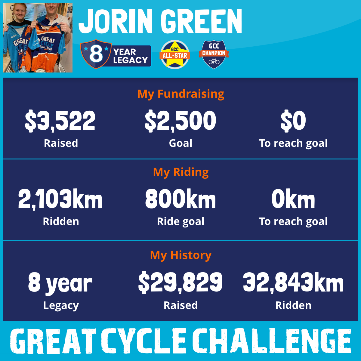 7,554 km Ridden$3,522 Raised2025